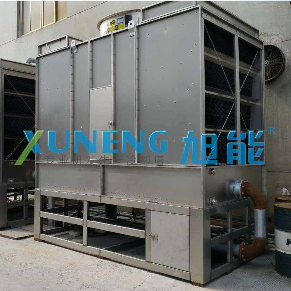 閉式冷卻塔(也叫蒸發式空冷器、密閉式冷卻塔或封閉式冷卻塔)是將管式換熱器置于塔內,通過流通的空氣、管外噴淋水與管內循環水的熱交換保證降溫效果。由于循環水是管內閉式循環,其能夠保證水質不受污染,很好的保護了主設備的高效運行,提高了使用壽命。外界氣溫較低時,可以停掉噴淋水系統,起到節水效果。隨著國家節能減排政策的實施和水資源的日益匱乏,近幾年密閉式冷卻塔在鋼鐵冶金、電力電子、機械加工、空調系統等行業得到了廣泛的應用。