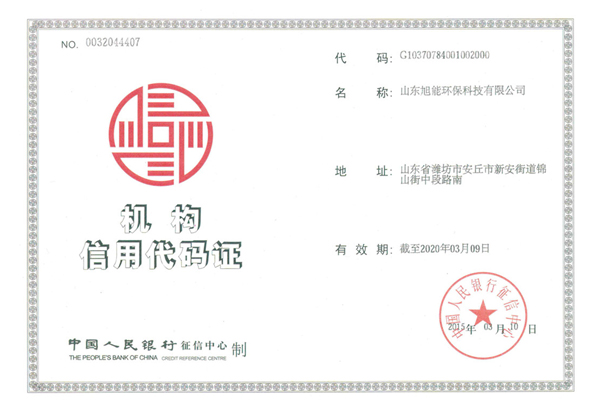 熱烈慶祝山東旭能環保科技有限公司機構信用代碼證、開戶許可證正式發證!